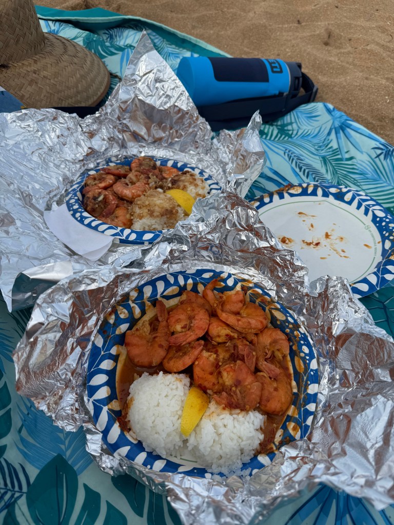 With arms full of food, we headed to Ala Moana Park, laid out a picnic mat, and enjoyed everything by the ocean.