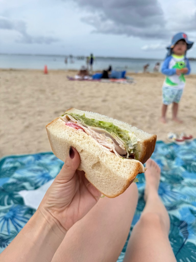 돈키호테 가서 아침으로 🍙오니기리랑 애 간식, 주스, 커피 사서 나눠먹고 신선한 생선을 맛볼 수 잇는 Niko’s 가서 포키랑 사시미 투고 하고, La tour Bakery (잘못해서 옆에 카페로 감) 에서 식빵, 퀸아망, 마카롱, 반미 샌드위치 투고해서 Ala Moana Park 가서 돗자리깔고 냠냠 먹고 바닷가에서 좀 놀고. 부지런하다 ㅎㅎ