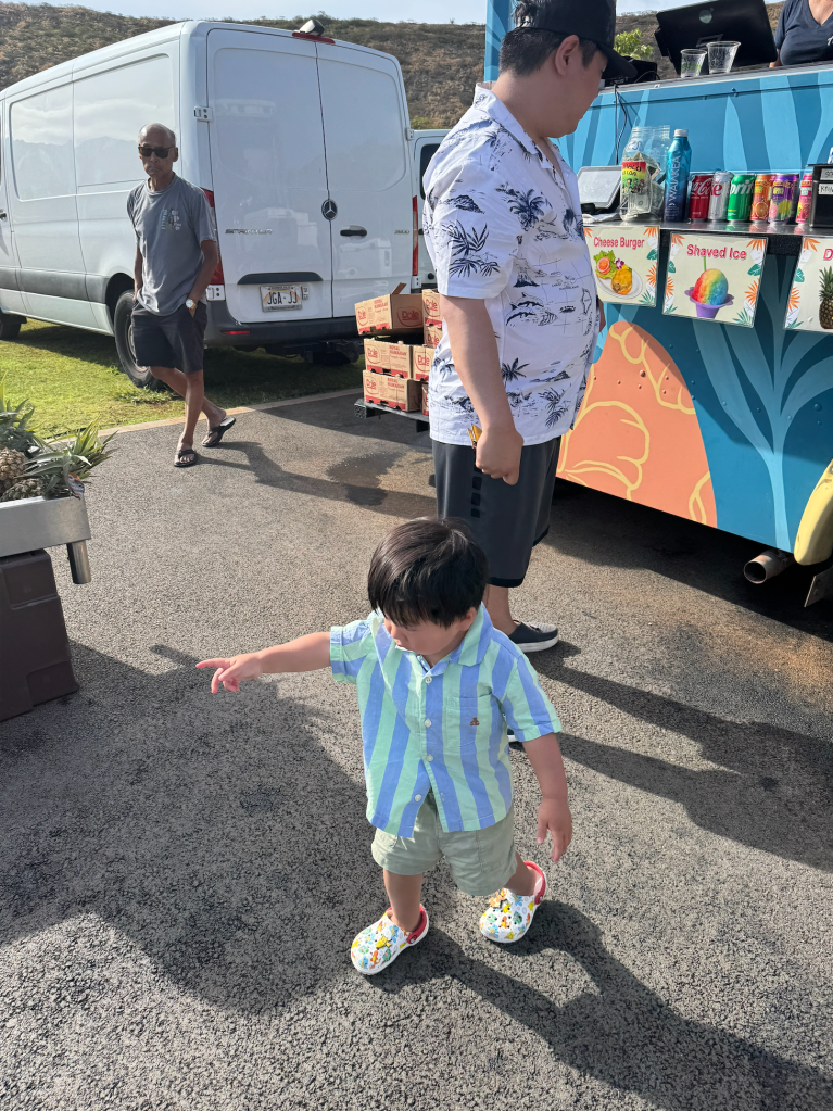 In Hawaii, the moments that stand out most are things like all of us splashing around in the ocean together, Leo excitedly eating shaved ice, or my parents smiling happily while enjoying delicious food.