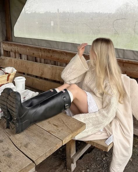 My husband got me Hunter boots for my birthday, and I’m so excited to wear them this fall. Mine are the classic khaki green tall boots. I’ve added a few inspo outfits featuring Hunter boots on my mood board too!